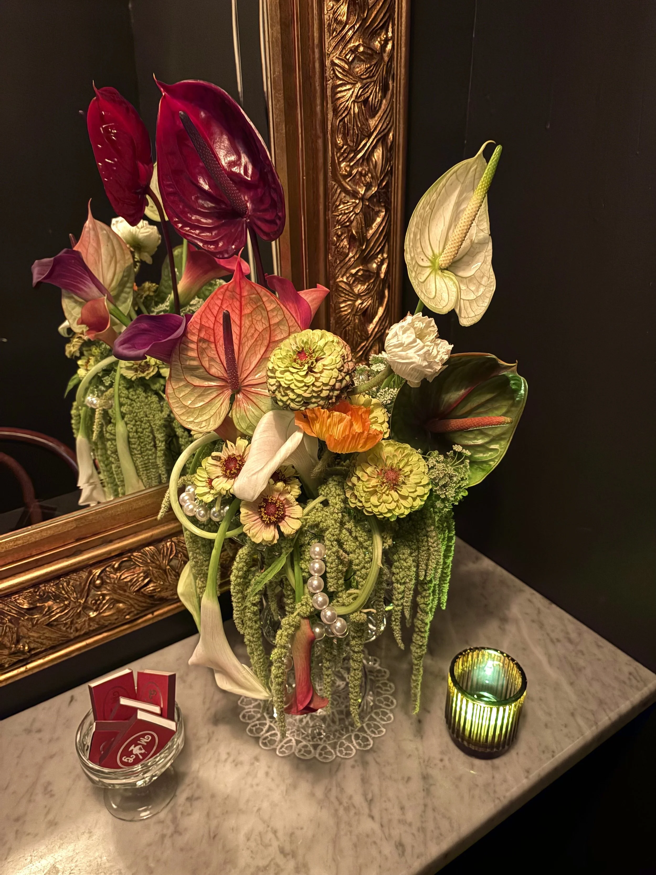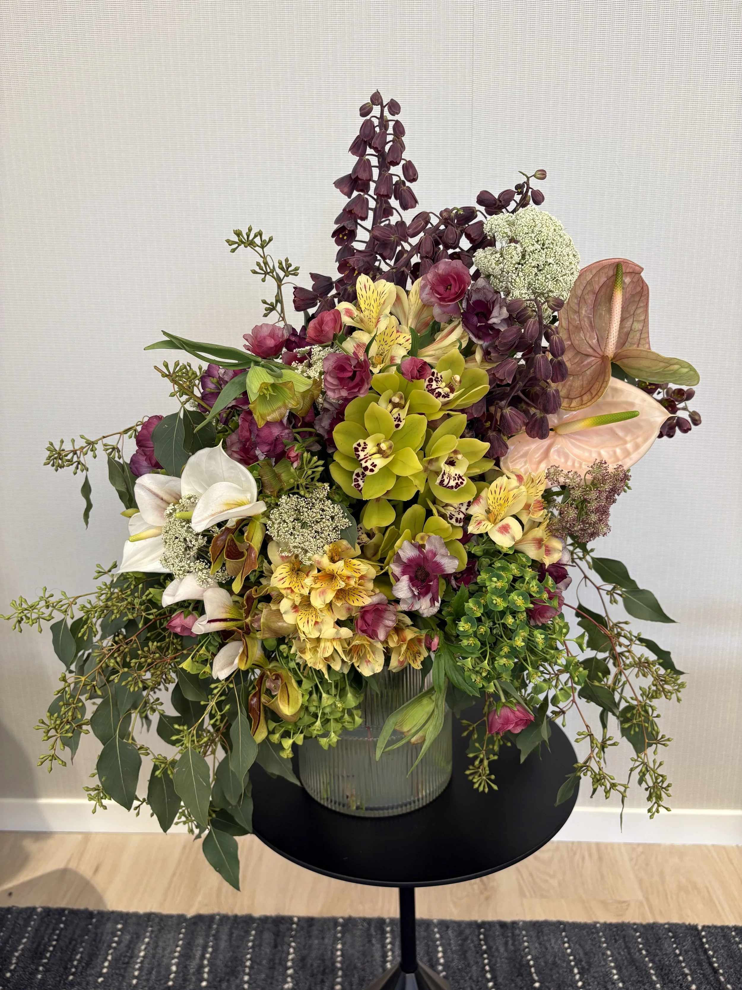 Floral pieces shaped with movement and emotion. Editorial arrangements, bespoke bouquets, and event florals designed with depth, texture and quiet drama.